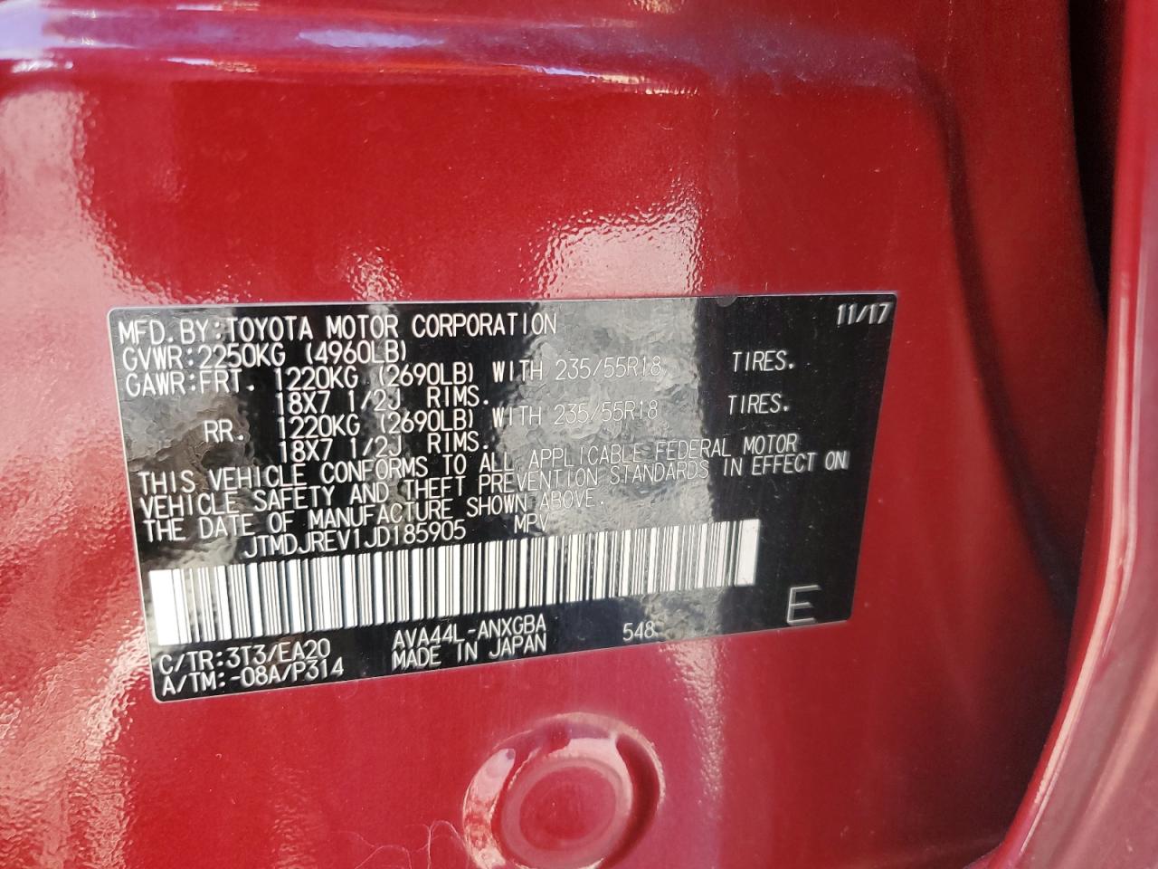 Цвет КрасныйЦилиндры 4Привод Полный приводVIN JTMDJREV1JD185905Состояние НеизвестноПовреждение Передняя или задняя