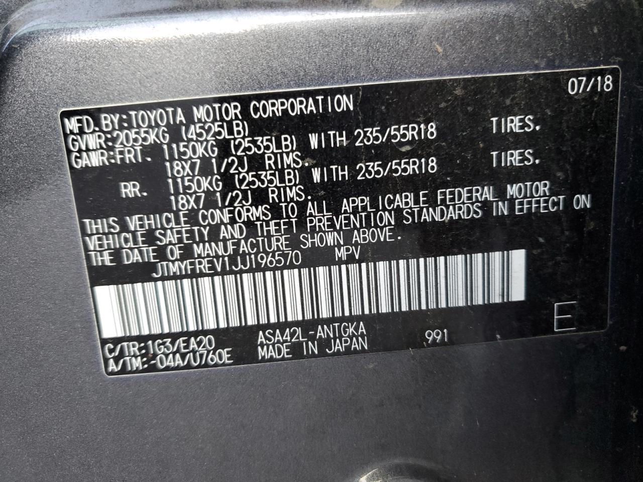 Цвет Древесный угольЦилиндры 4VIN JTMYFREV1JJ196570Состояние Заводится и едет (проверено)Повреждение Передняя или задняя