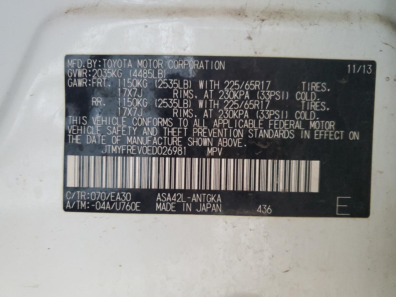 Цвет БелыйЦилиндры 4VIN JTMYFREV0ED026981Состояние Заводится и едет (проверено)Повреждение Передняя или задняя