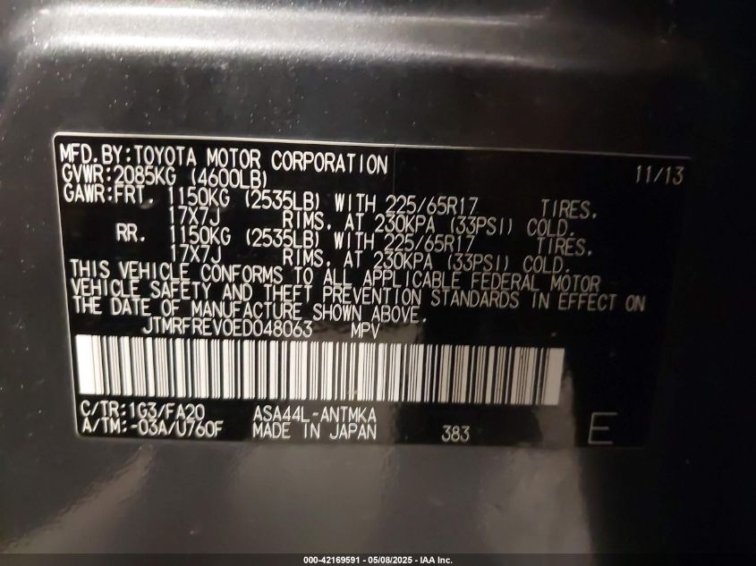 TOYOTA RAV4 2.5 2014 г.в., Полный привод (JTMRFREV0ED048063) из США