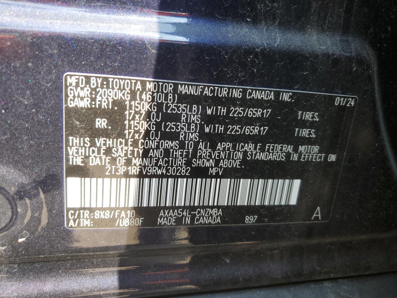 TOYOTA RAV4 2.5 2024 г.в., Полный привод (2T3P1RFV9RW430282) из США