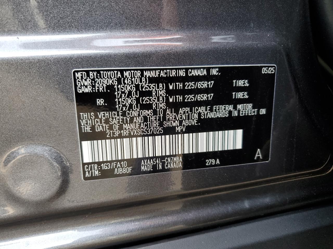 TOYOTA RAV4 2.5 2025 г.в., Полный привод (2T3P1RFVXSC537025) из США