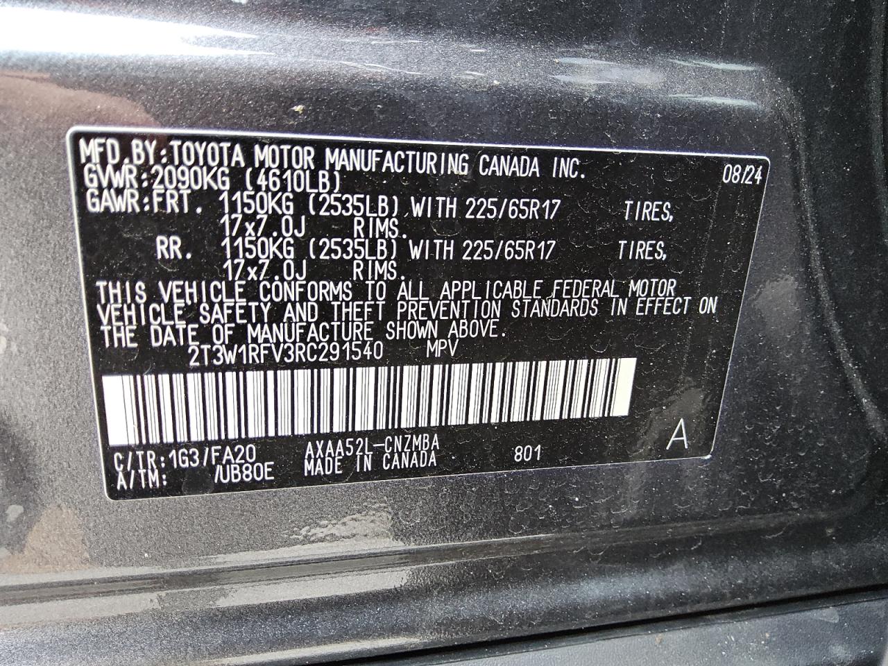 TOYOTA RAV4 2.5 2024 г.в., (2T3W1RFV3RC291540) из США