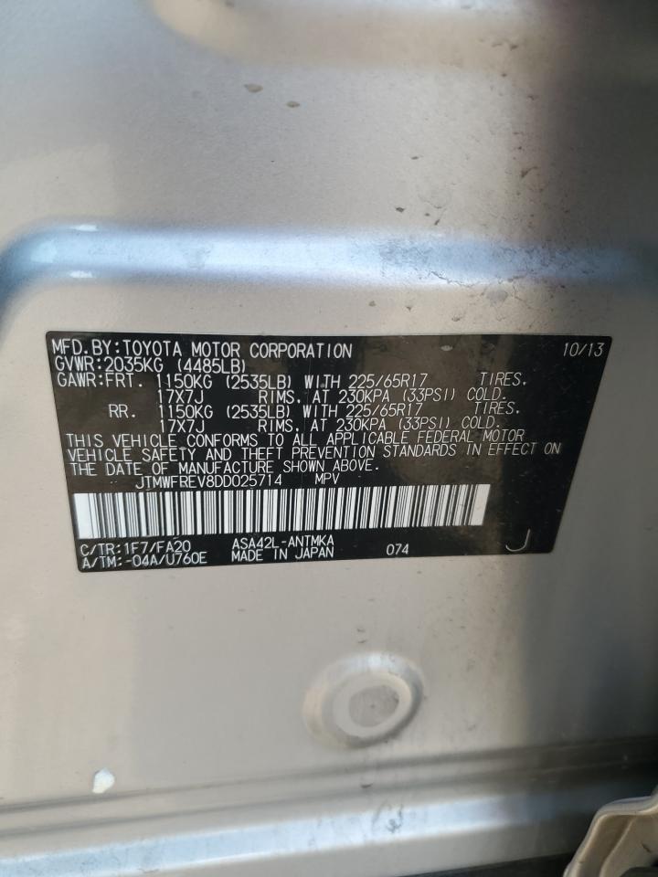 Цвет СеребряныйЦилиндры 4VIN JTMWFREV8DD025714Состояние Заводится и едет (проверено)Повреждение Передняя или задняя