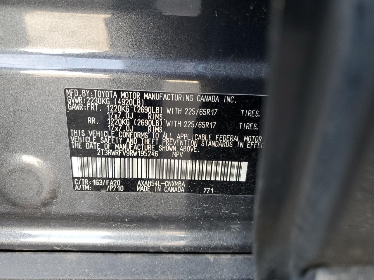 Цвет СерыйЦилиндры 4Привод Полный приводVIN 2T3RWRFV9RW195246Состояние НеизвестноПовреждение Передняя или задняя