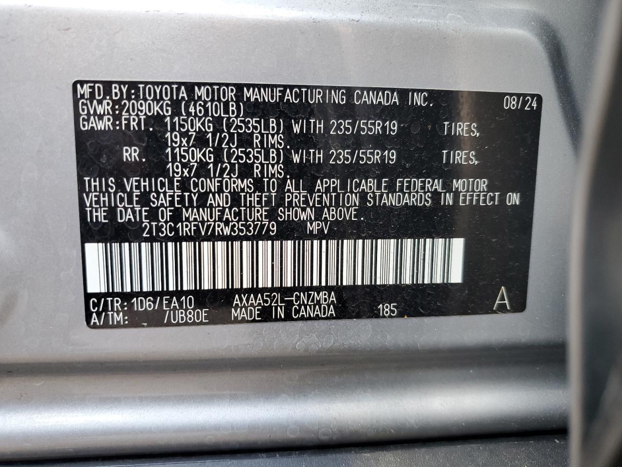 TOYOTA RAV4 2.5 2024 г.в., (2T3C1RFV7RW353779) из США