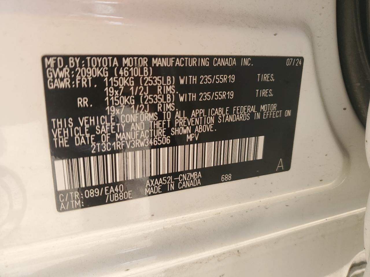 TOYOTA RAV4 2.5 2024 г.в., (2T3C1RFV3RW346506) из США