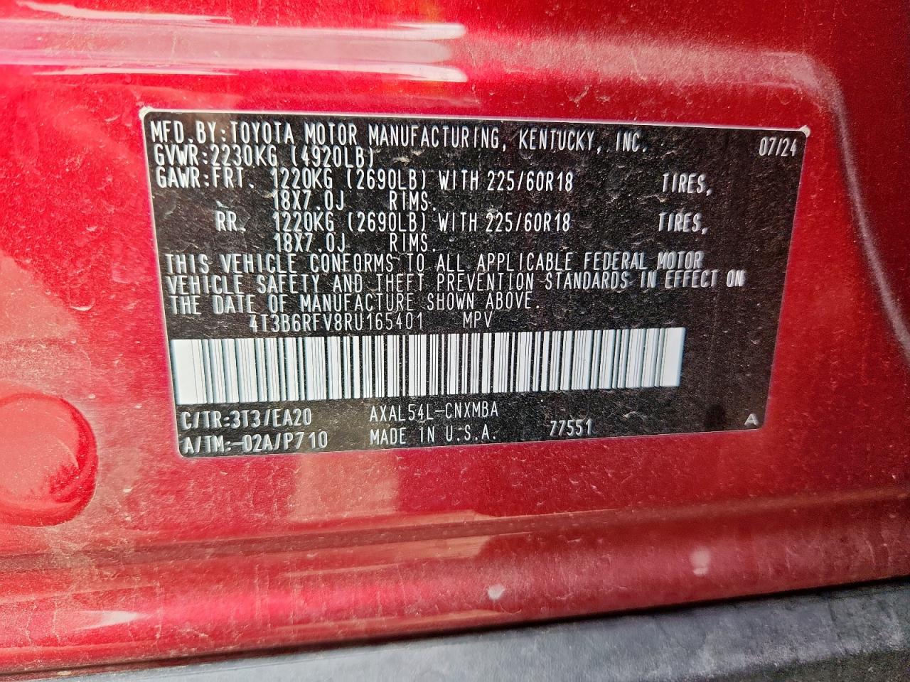 TOYOTA RAV4 2.5 2024 г.в., Полный привод (4T3B6RFV8RU165401) из США