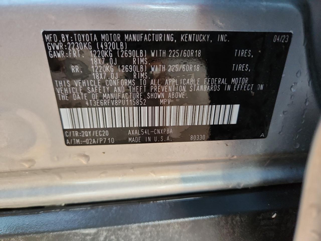 TOYOTA RAV4 2.5 2023 г.в., Полный привод (4T3E6RFV8PU115852) из США