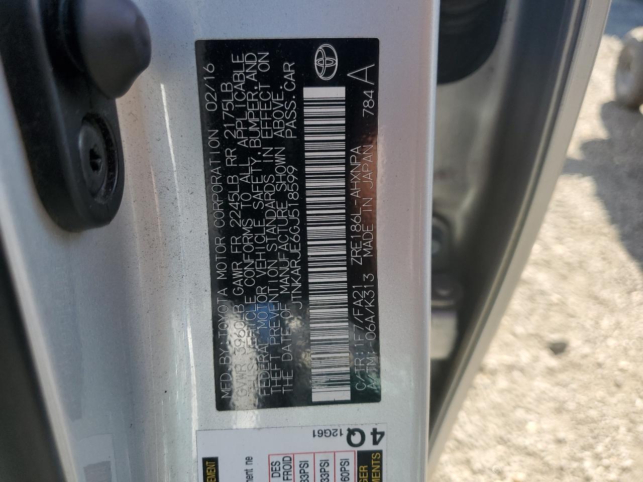 Цвет СеребряныйЦилиндры 4VIN JTNKARJE6GJ518599Состояние Заводится и едет (проверено)Повреждение Передняя или задняя