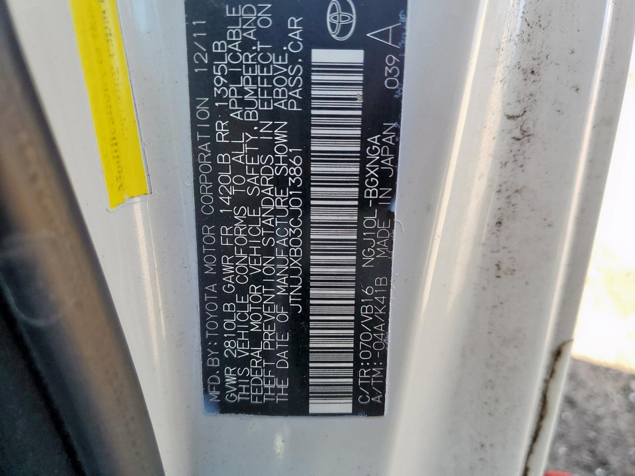 Цвет БелыйЦилиндры 4VIN JTNJJXB03CJ013861Состояние НеизвестноПовреждение Передняя или задняяДата аукциона 2025-12-01