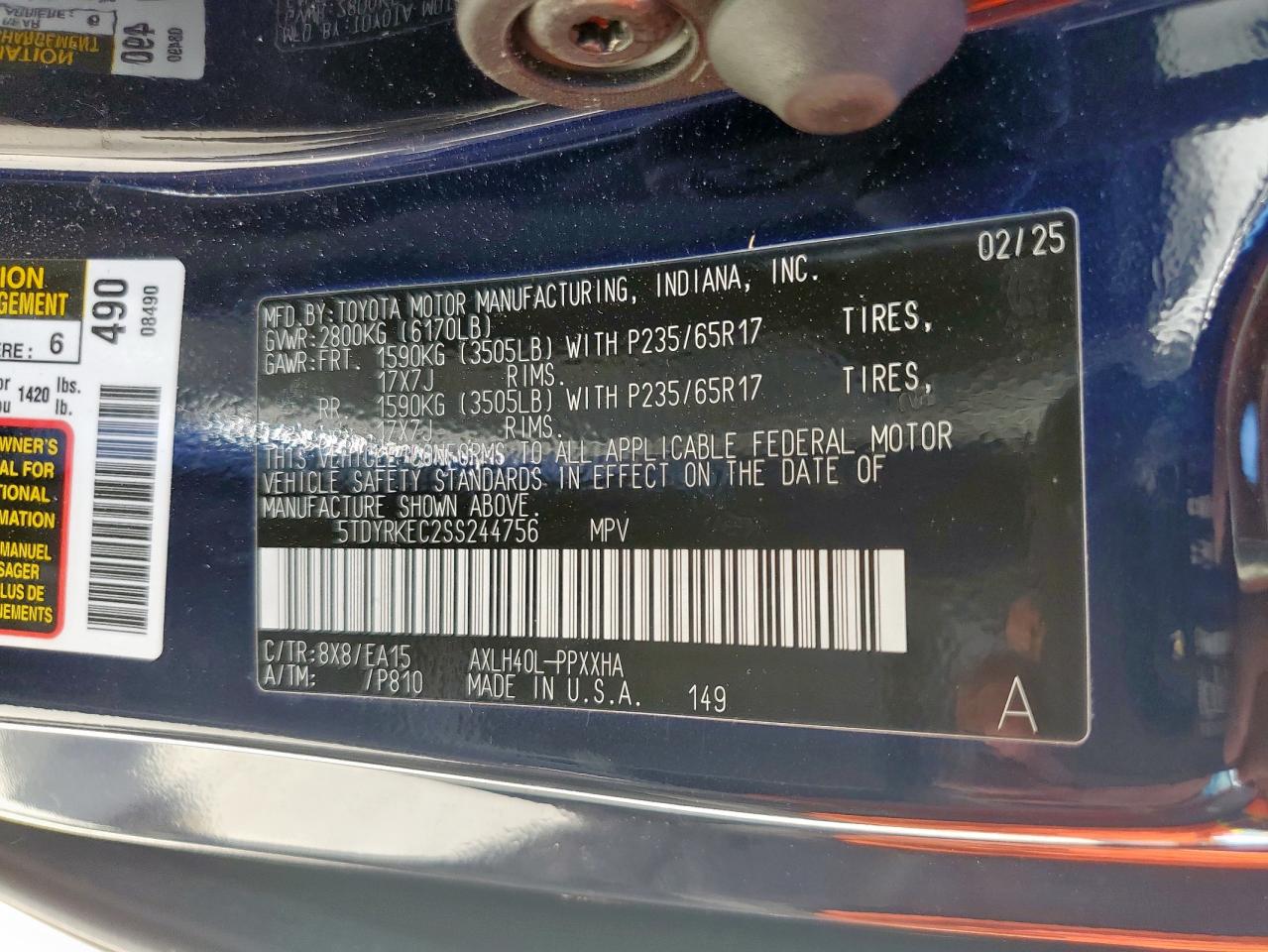 TOYOTA SIENNA 2.5 2025 г.в., (5TDYRKEC2SS244756) из США
