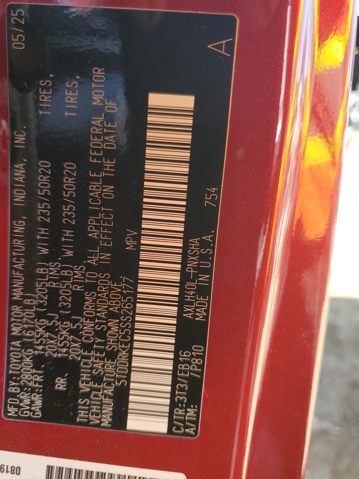 Цвет КрасныйЦилиндры 4VIN 5TDDRKEC5SS265177Состояние НеизвестноПовреждение Передняя или задняяДата аукциона 2025-11-03