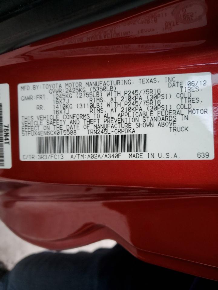 TOYOTA TACOMA 2.7 2012 г.в., 4x4 с задним приводом (5TFUX4EN6CX015588) из США