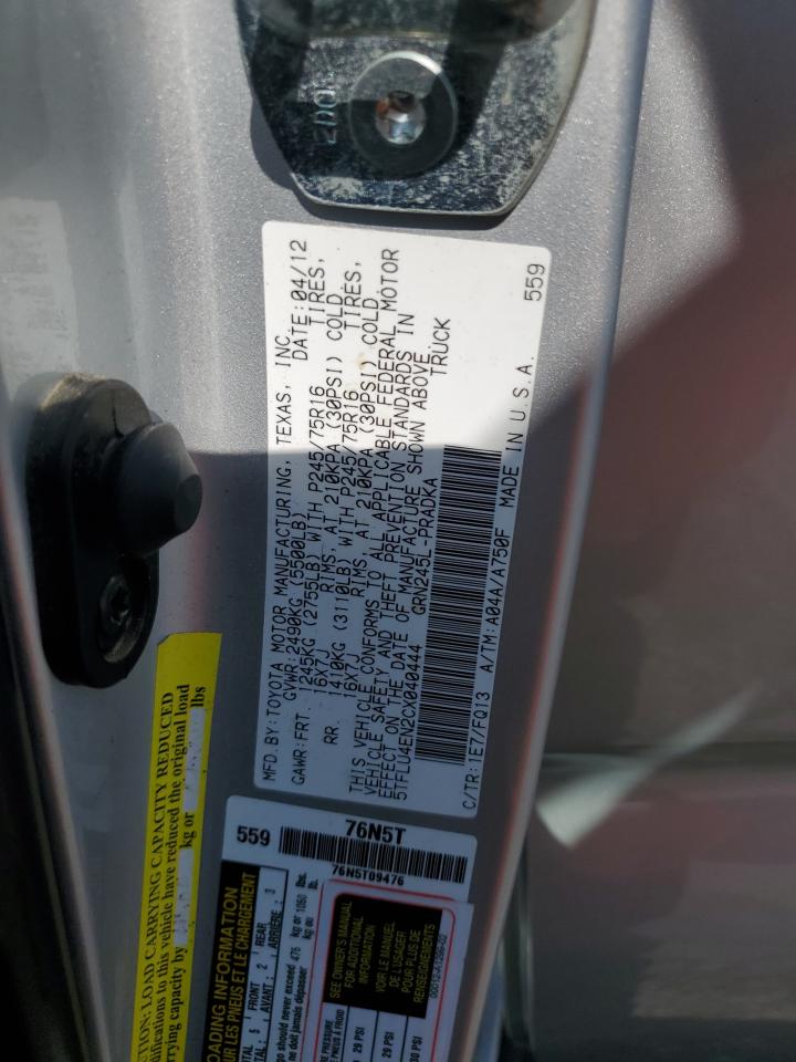 TOYOTA TACOMA 4.0 2012 г.в., 4x4 с задним приводом (5TFLU4EN2CX040444) из США