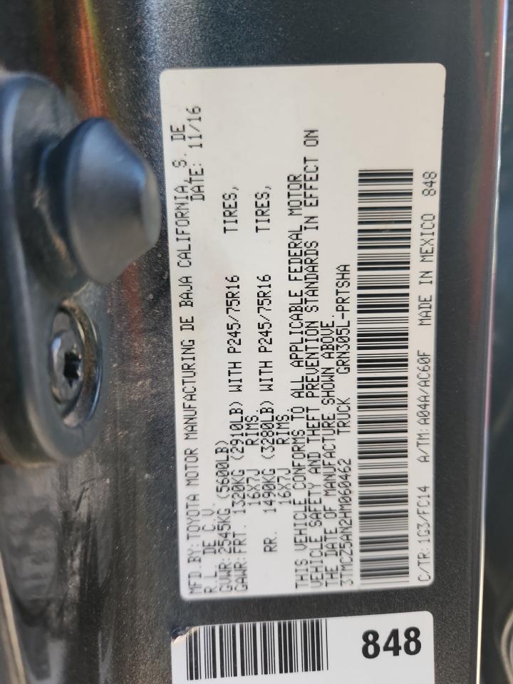 TOYOTA TACOMA 3.5 2017 г.в., 4x4 с задним приводом (3TMCZ5AN2HM060462) из США