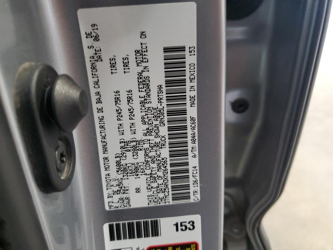 TOYOTA TACOMA 3.5 2019 г.в., 4x4 с задним приводом (3TMCZ5AN3KM264565) из США