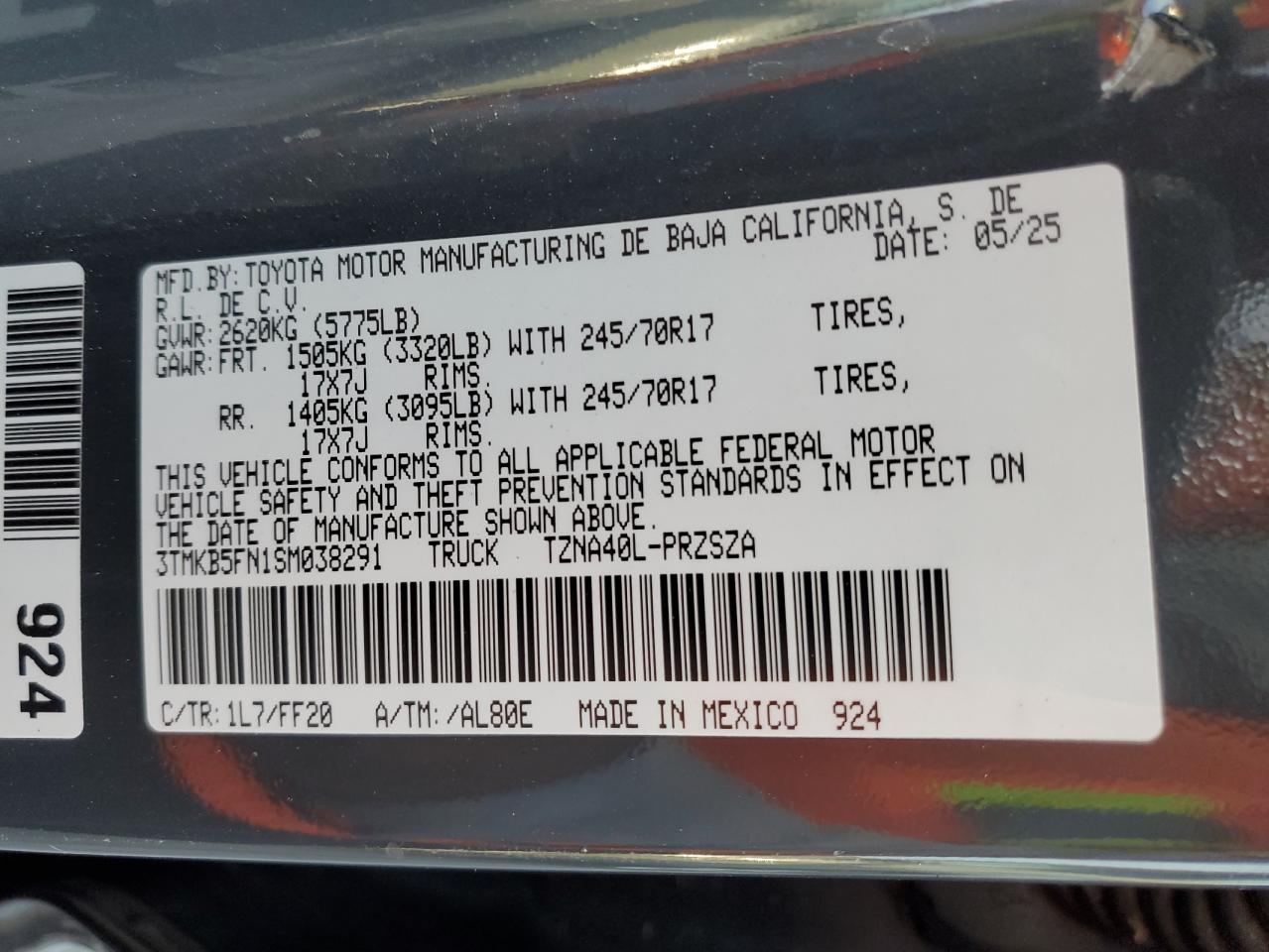 TOYOTA TACOMA 2.4 2025 г.в., Задний привод (3TMKB5FN1SM038291) из США