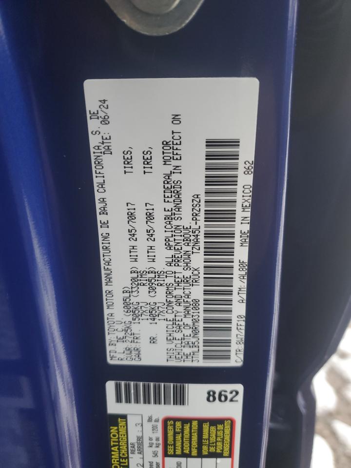 Цвет СинийЦилиндры 4Привод 4x4 с задним приводомVIN 3TMLB5JN0RM031080Состояние НеизвестноПовреждение Снятие деталейДата аукциона 2025-11-24