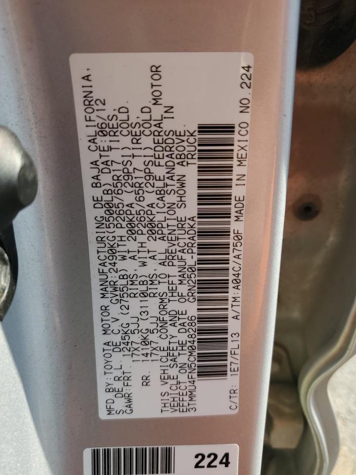 TOYOTA TACOMA 4.0 2012 г.в., 4x4 с задним приводом (3TMMU4FN5CM048286) из США