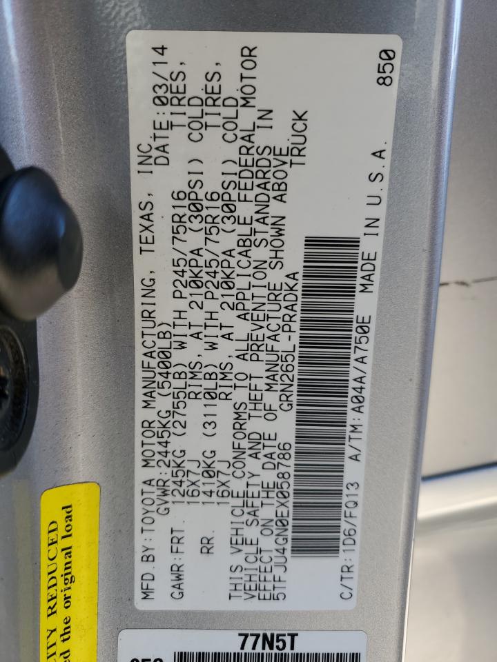 TOYOTA TACOMA 4.0 2014 г.в., Задний привод (5TFJU4GN0EX058786) из США
