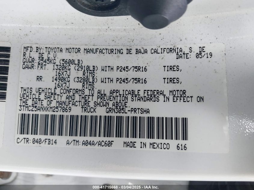 2019 TOYOTA TACOMA SR/SR5/TRD SPORT