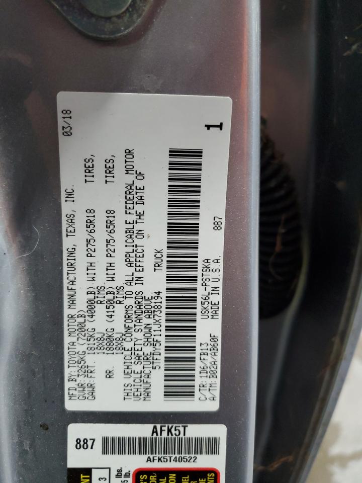 TOYOTA TUNDRA 5.7 2018 г.в., 4x4 с задним приводом (5TFDY5F11JX738194) из США