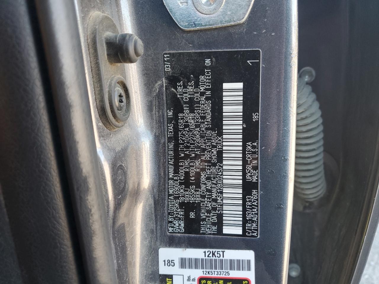 2011 TOYOTA TUNDRA GRADE 5.7L V8