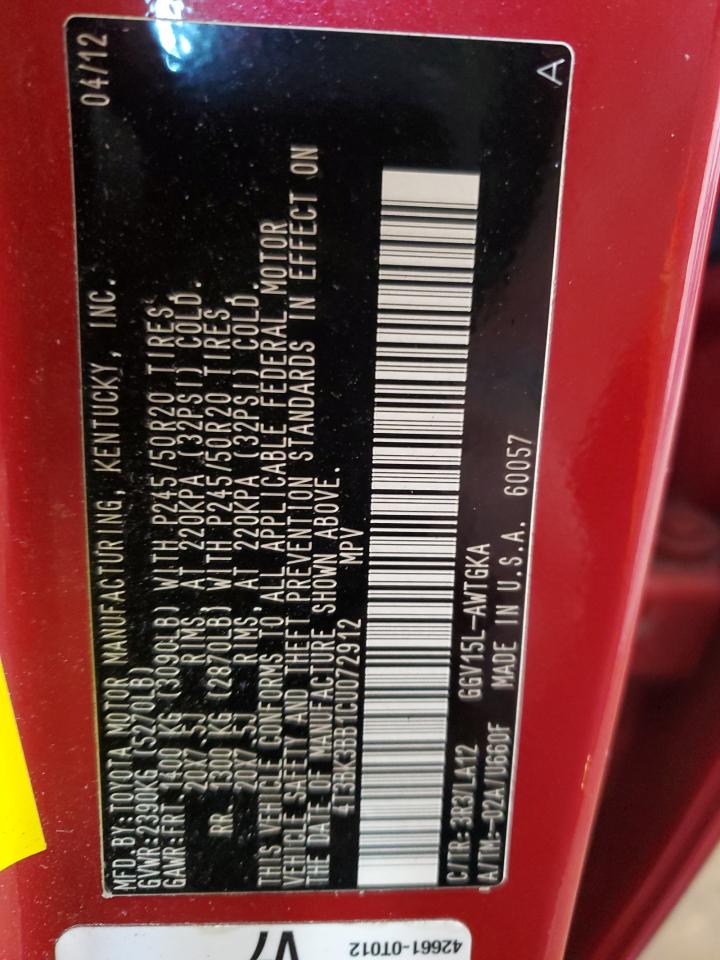 TOYOTA VENZA 3.5 2012 г.в., Полный привод (4T3BK3BB1CU072912) из США