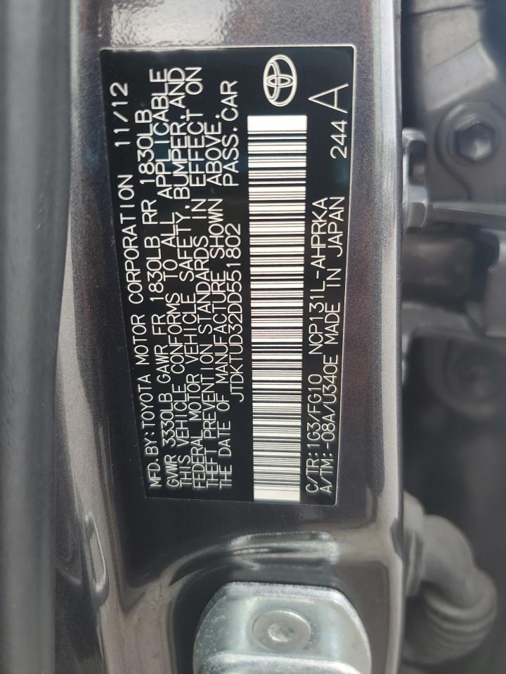 Цвет СерыйЦилиндры 4VIN JTDKTUD32DD551802Состояние Заводится и едет (проверено)Повреждение Передняя или задняя