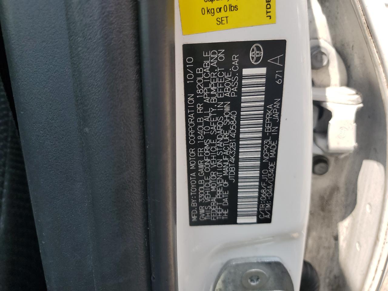 TOYOTA YARIS 1.5 2011 г.в., (JTDBT4K32B1405840) из США