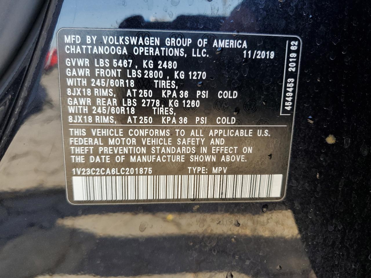 VOLKSWAGEN ATLAS 2.0 2020 г.в., (1V23C2CA6LC201875) из США