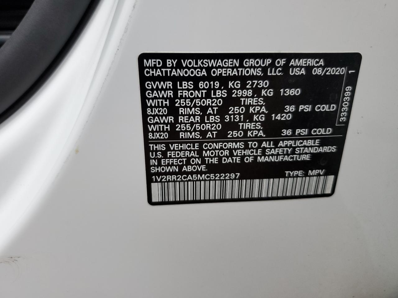 VOLKSWAGEN ATLAS 3.6 2021 г.в., Полный привод (1V2RR2CA5MC522297) из США