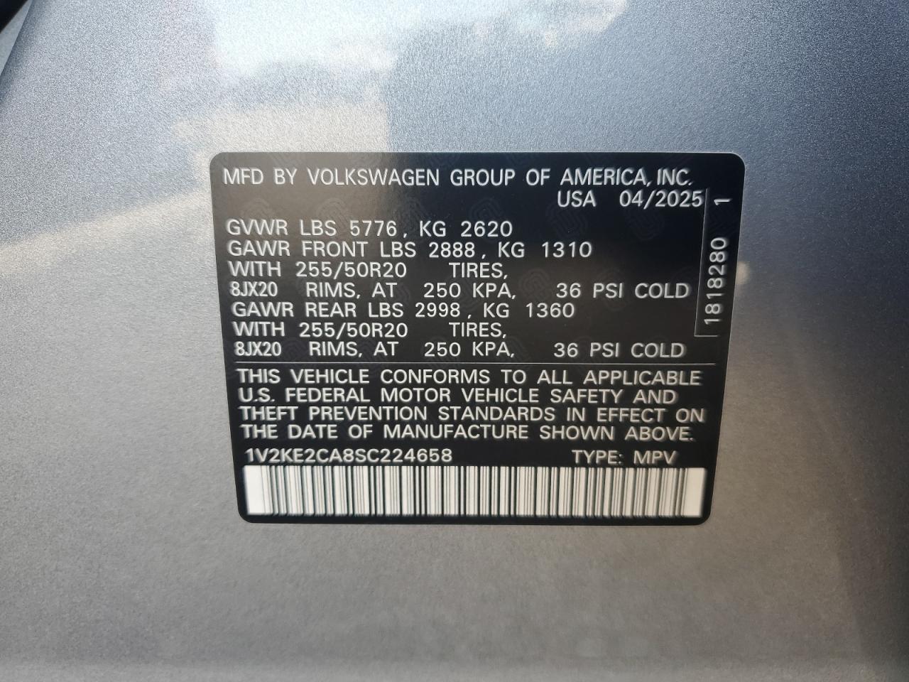 VOLKSWAGEN ATLAS CROSS SPORT 2.0 2025 г.в., Полный привод (1V2KE2CA8SC224658) из США