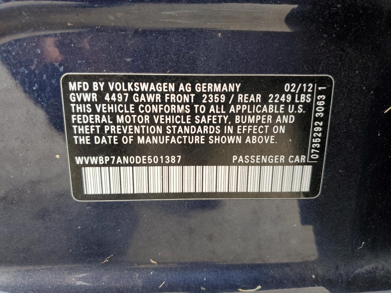 VOLKSWAGEN CC 2.0 2013 г.в., (WVWBP7AN0DE501387) из США