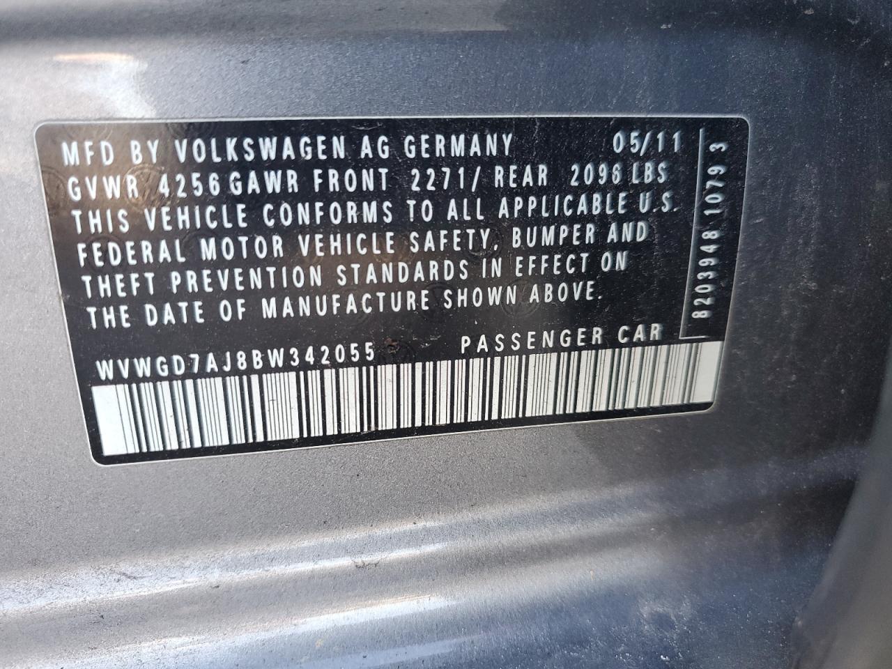 VOLKSWAGEN GOLF GTI 2.0 2011 г.в., (WVWGD7AJ8BW342055) из США
