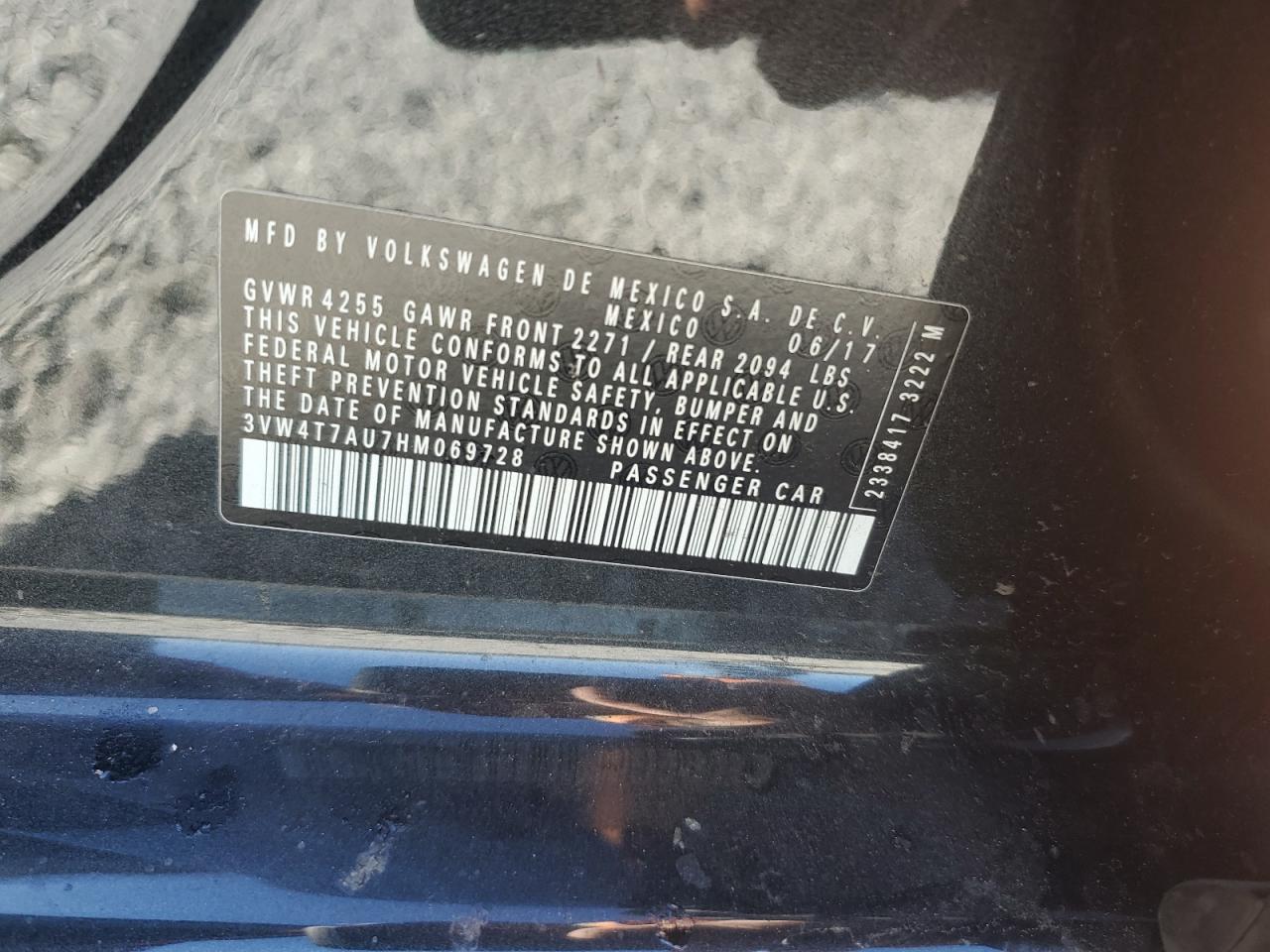 VOLKSWAGEN GOLF GTI 2.0 2017 г.в., (3VW4T7AU7HM069728) из США