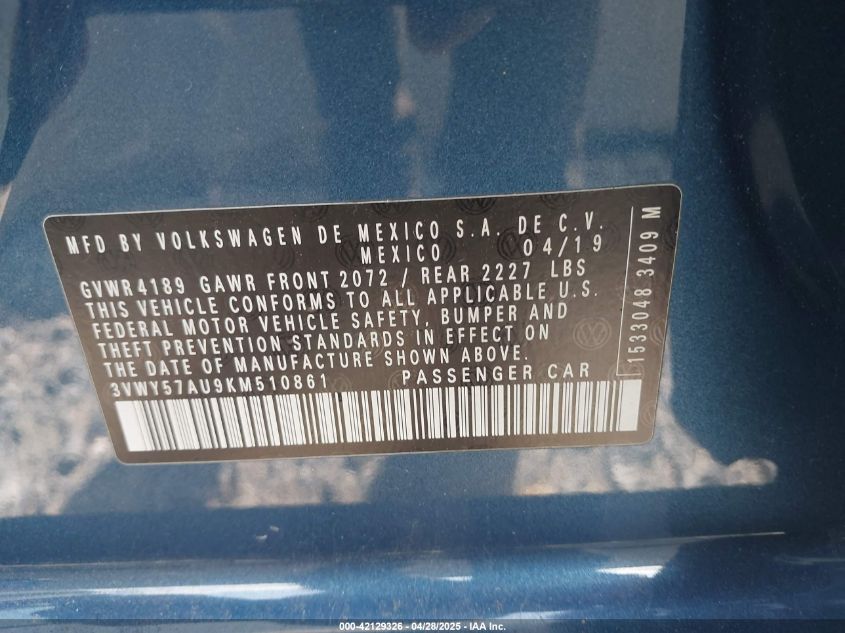 VOLKSWAGEN GOLF SPORTSVAN 1.4 2019 г.в., Передний привод (3VWY57AU9KM510861) из США