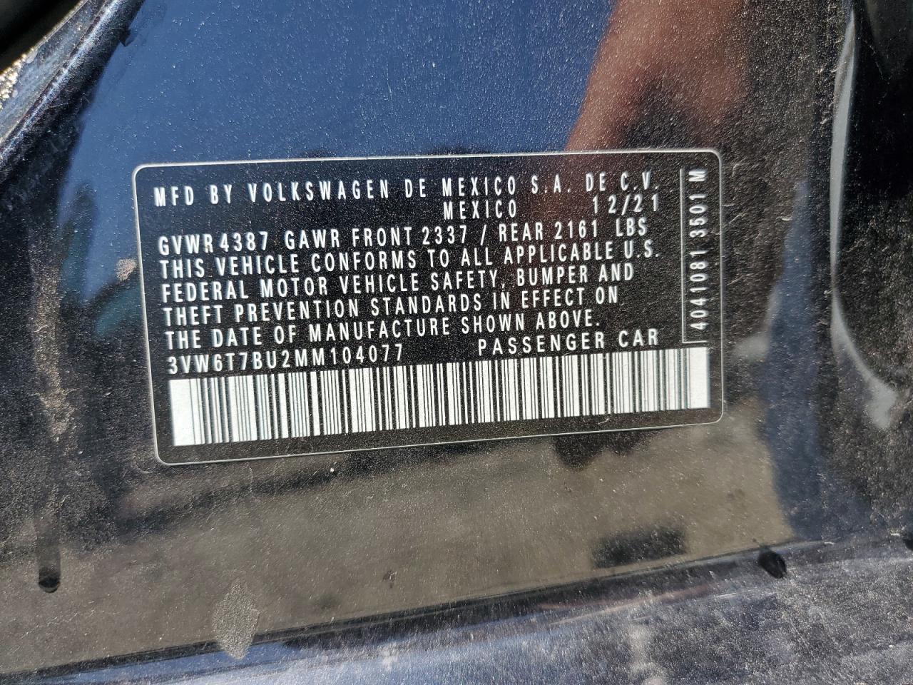 VOLKSWAGEN JETTA 2.0 2021 г.в., (3VW6T7BU2MM104077) из США