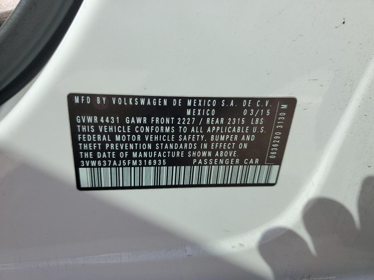 VOLKSWAGEN JETTA 1.4 2015 г.в., (3VW637AJ5FM316935) из США