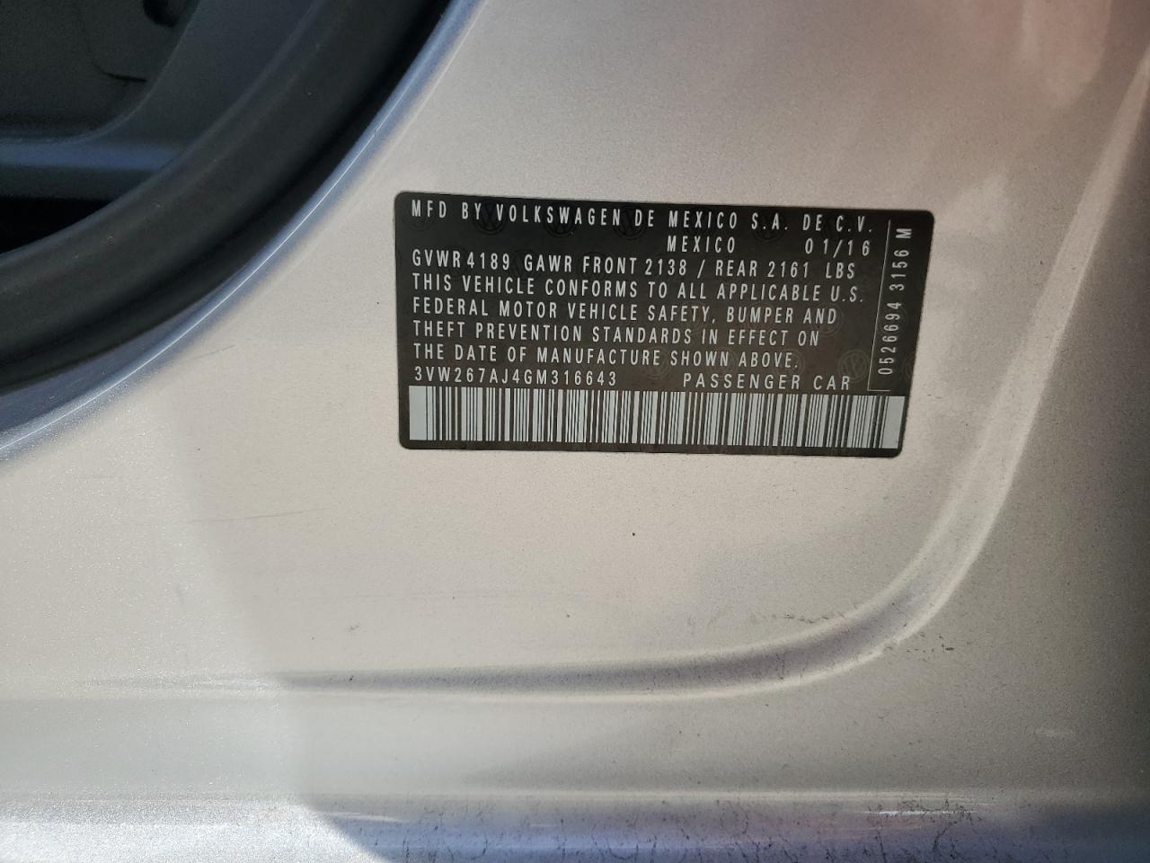 VOLKSWAGEN JETTA 1.4 2016 г.в., (3VW267AJ4GM316643) из США