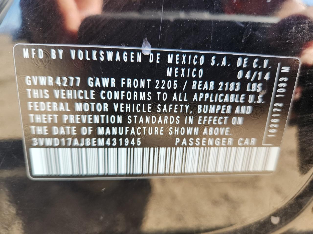 VOLKSWAGEN JETTA 1.8 2014 г.в., (3VWD17AJ8EM431945) из США