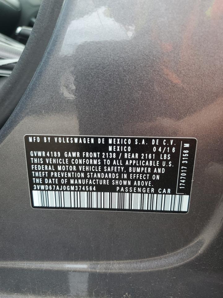 VOLKSWAGEN JETTA 1.4 2016 г.в., (3VWD67AJ0GM374564) из США