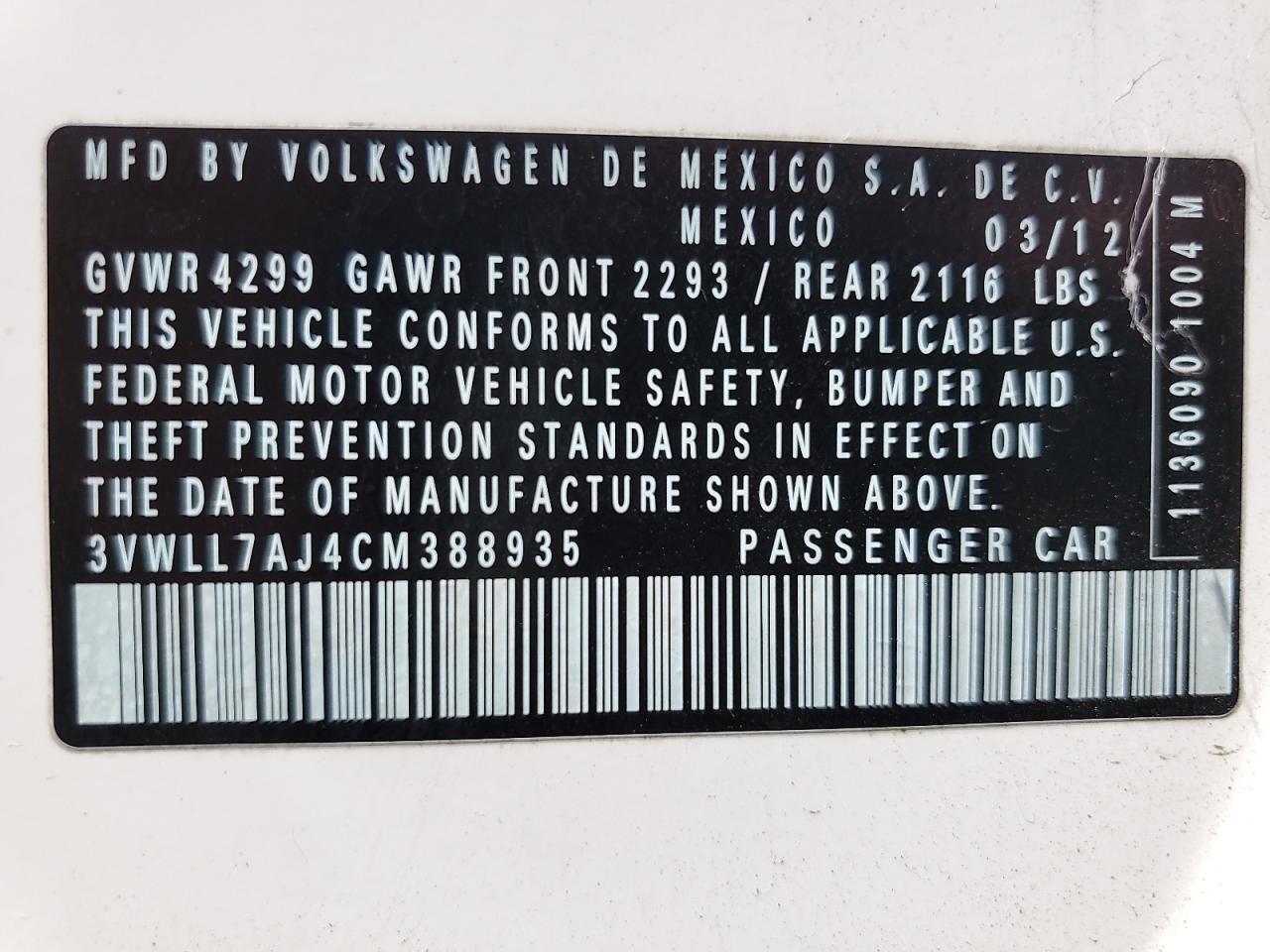 VOLKSWAGEN JETTA 2.0 2012 г.в., (3VWLL7AJ4CM388935) из США