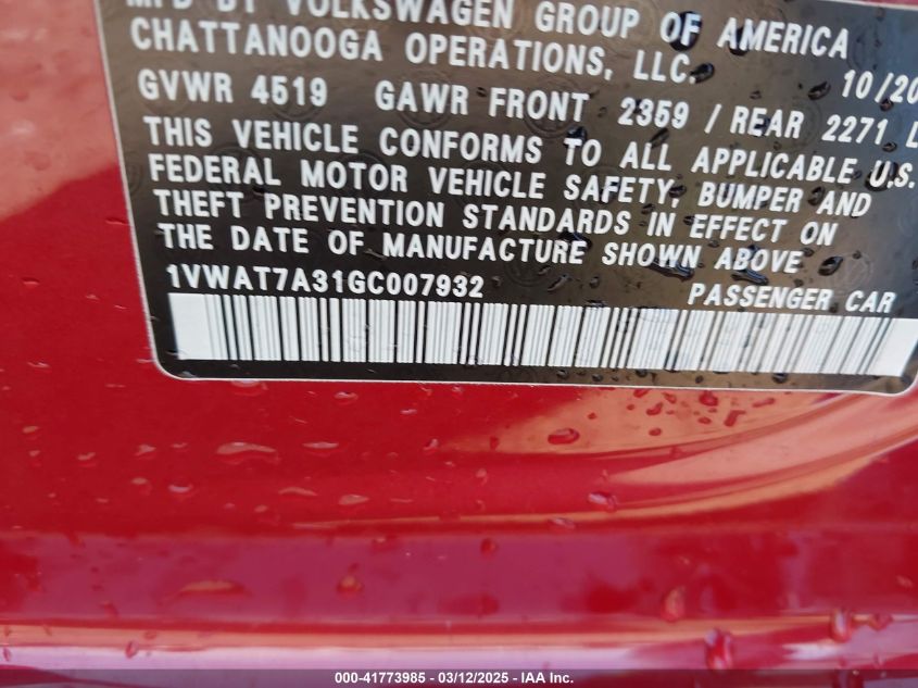 2016 VOLKSWAGEN PASSAT 1.8T S