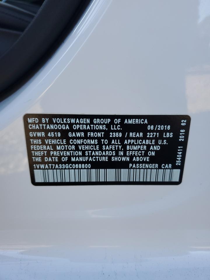 VOLKSWAGEN PASSAT 1.8 2016 г.в., (1VWAT7A33GC068800) из США