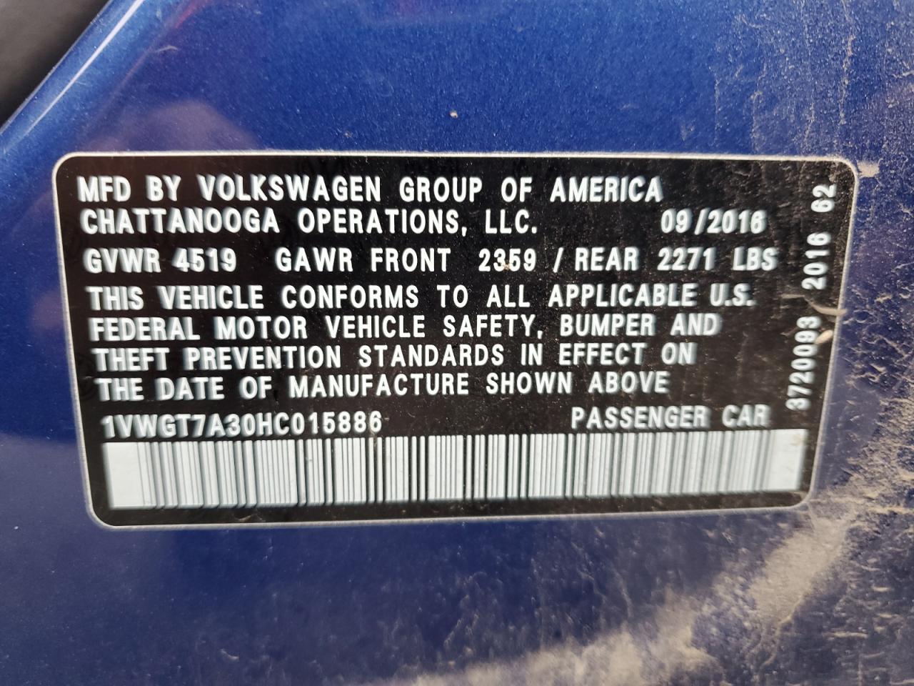 VOLKSWAGEN PASSAT 1.8 2017 г.в., (1VWGT7A30HC015886) из США