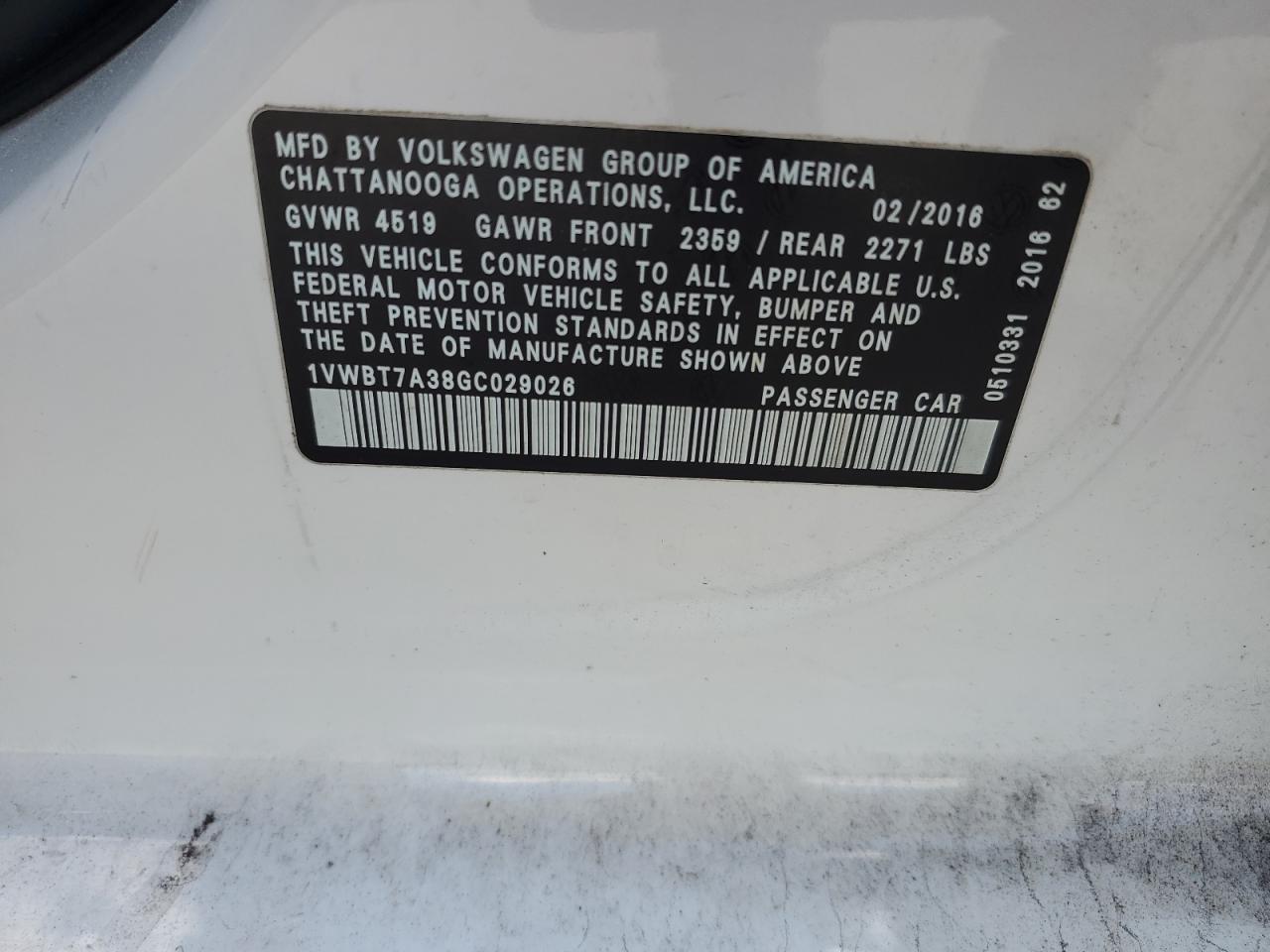 VOLKSWAGEN PASSAT 1.8 2016 г.в., (1VWBT7A38GC029026) из США