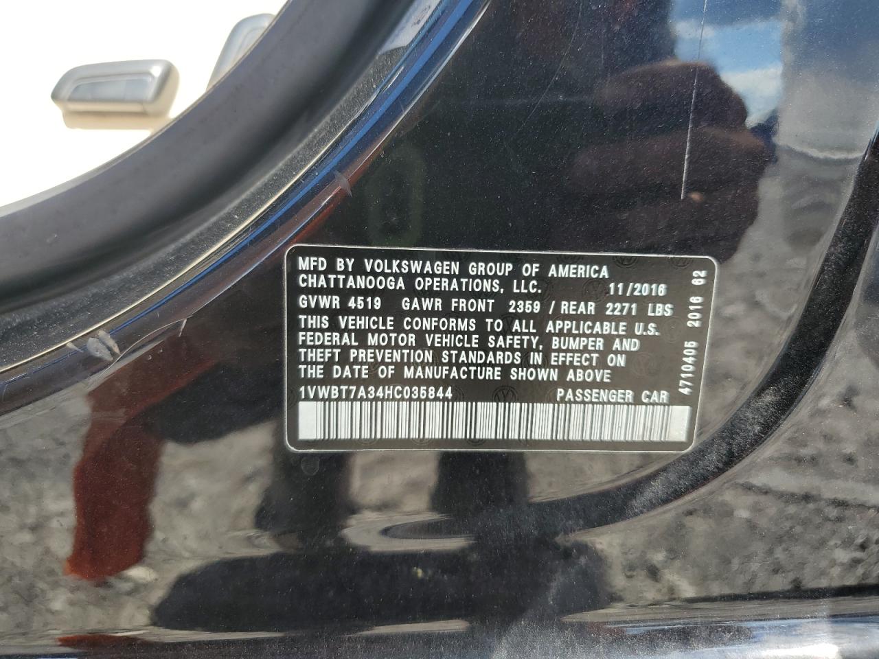 VOLKSWAGEN PASSAT 1.8 2017 г.в., (1VWBT7A34HC035844) из США