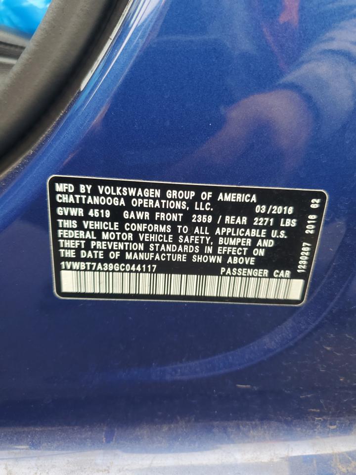 VOLKSWAGEN PASSAT 1.8 2016 г.в., (1VWBT7A39GC044117) из США